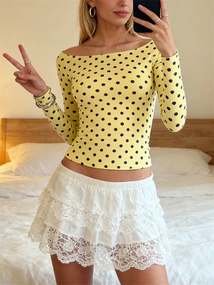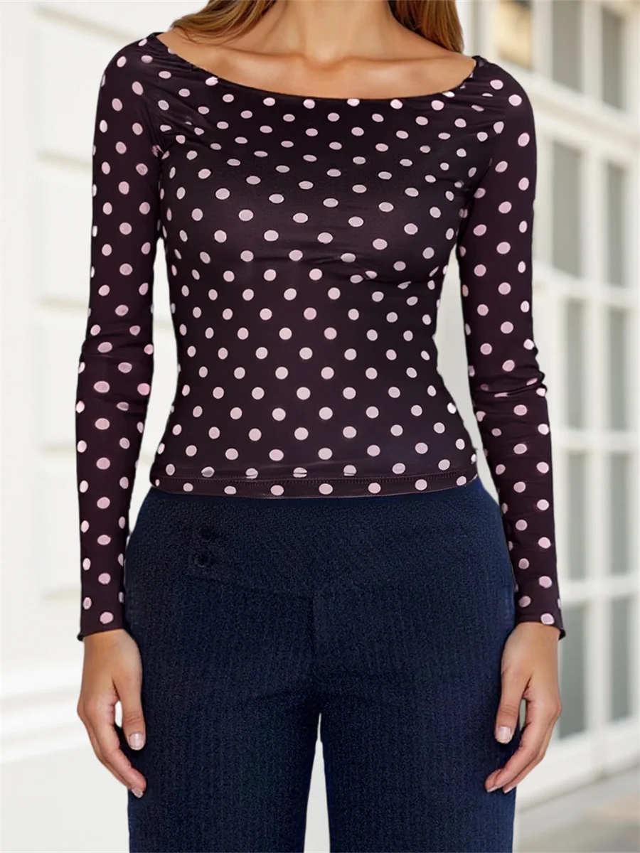 Women Polka Dot T-shirt Long Sleeve Backelss