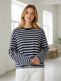 Women’s Stripe Print Tee Tops Long Sleeve Round