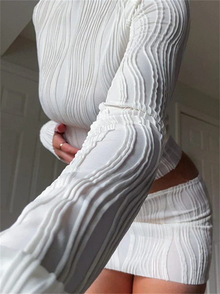Women’s Fashion Shirt Crew Neck Long Sleeve T-shirt Three-Dimensional Textured Slim Fit Pullover Tops