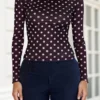 Women Stripe Tops Long Sleeve Low Cut Slim Fit
